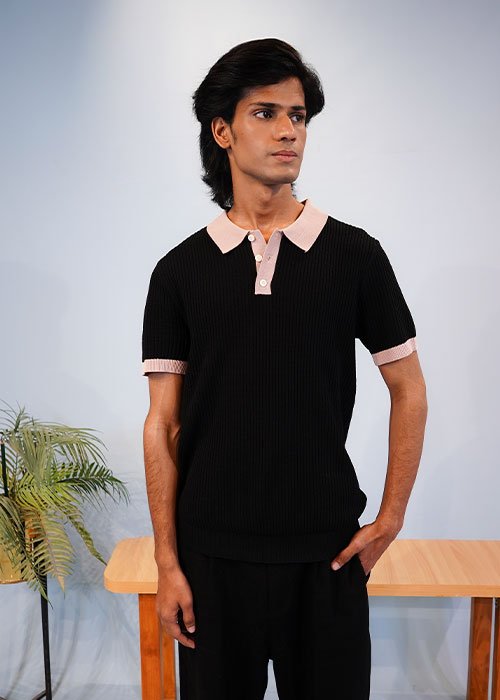 Textured Polo Shirt Black